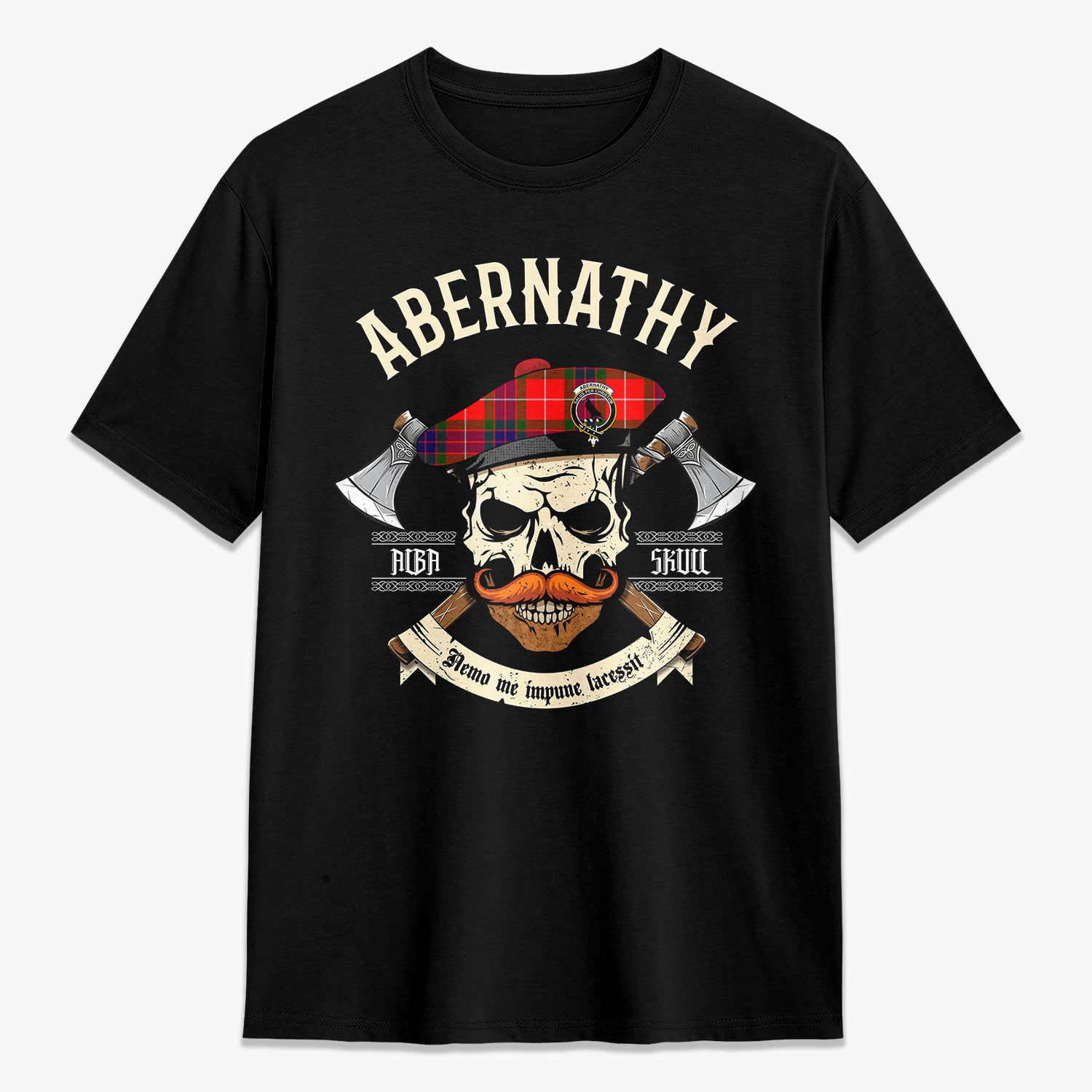 Abernathy Tartan Crest 2D T-shirt - Alba Skull Style,