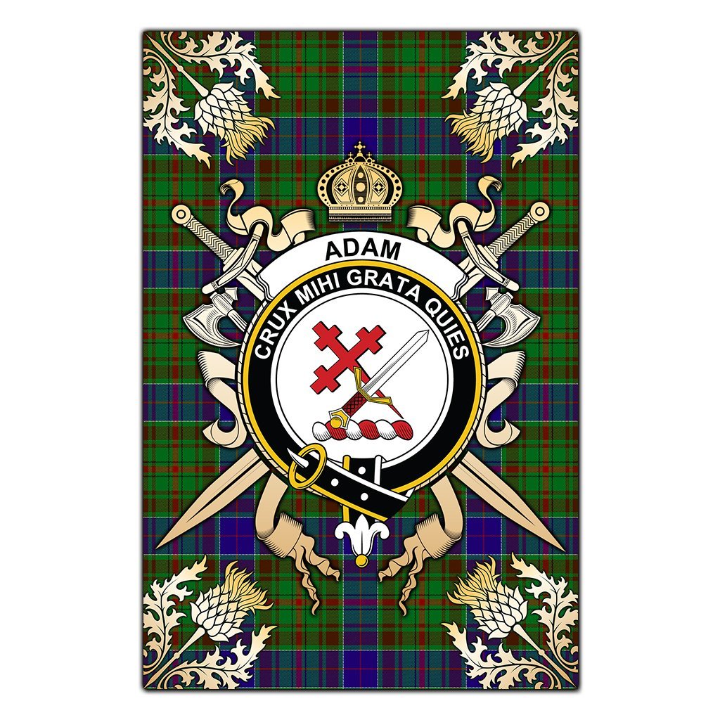 Adam Tartan Crest Black Garden Flag - Gold Thistle Style