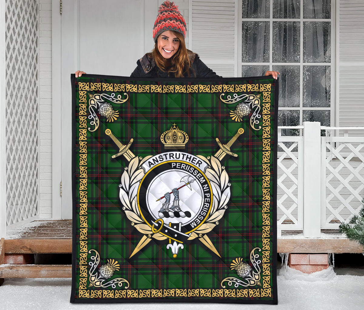 Anstruther Tartan Crest Premium Quilt - Celtic Thistle Style