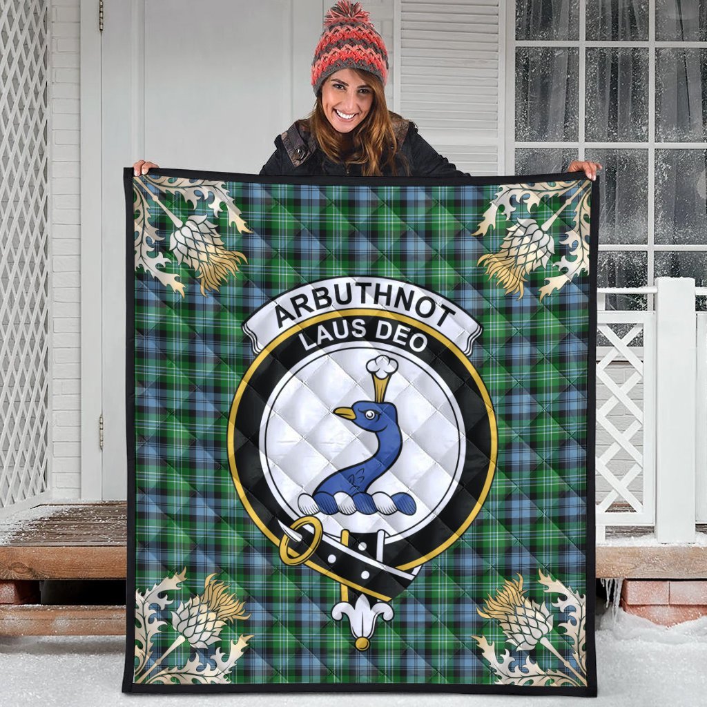 Arbuthnot Ancient Tartan Crest Premium Quilt - Gold Thistle Style