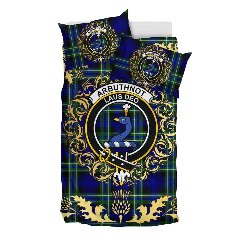 Arbuthnot Modern Tartan Crest Bedding Set - Golden Thistle Style