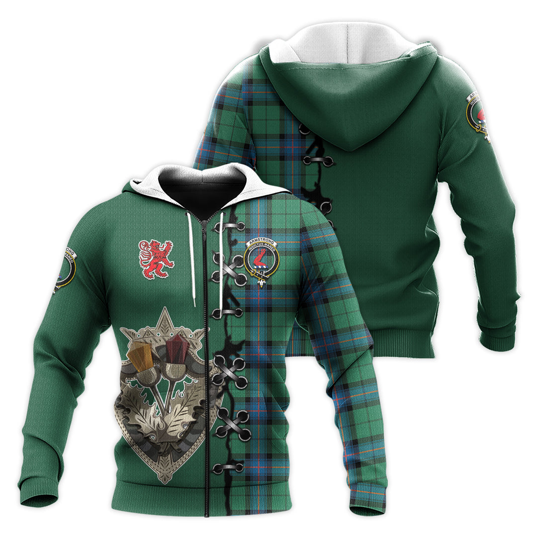 Armstrong Ancient Tartan Hoodie - Lion Rampant And Celtic Thistle Style