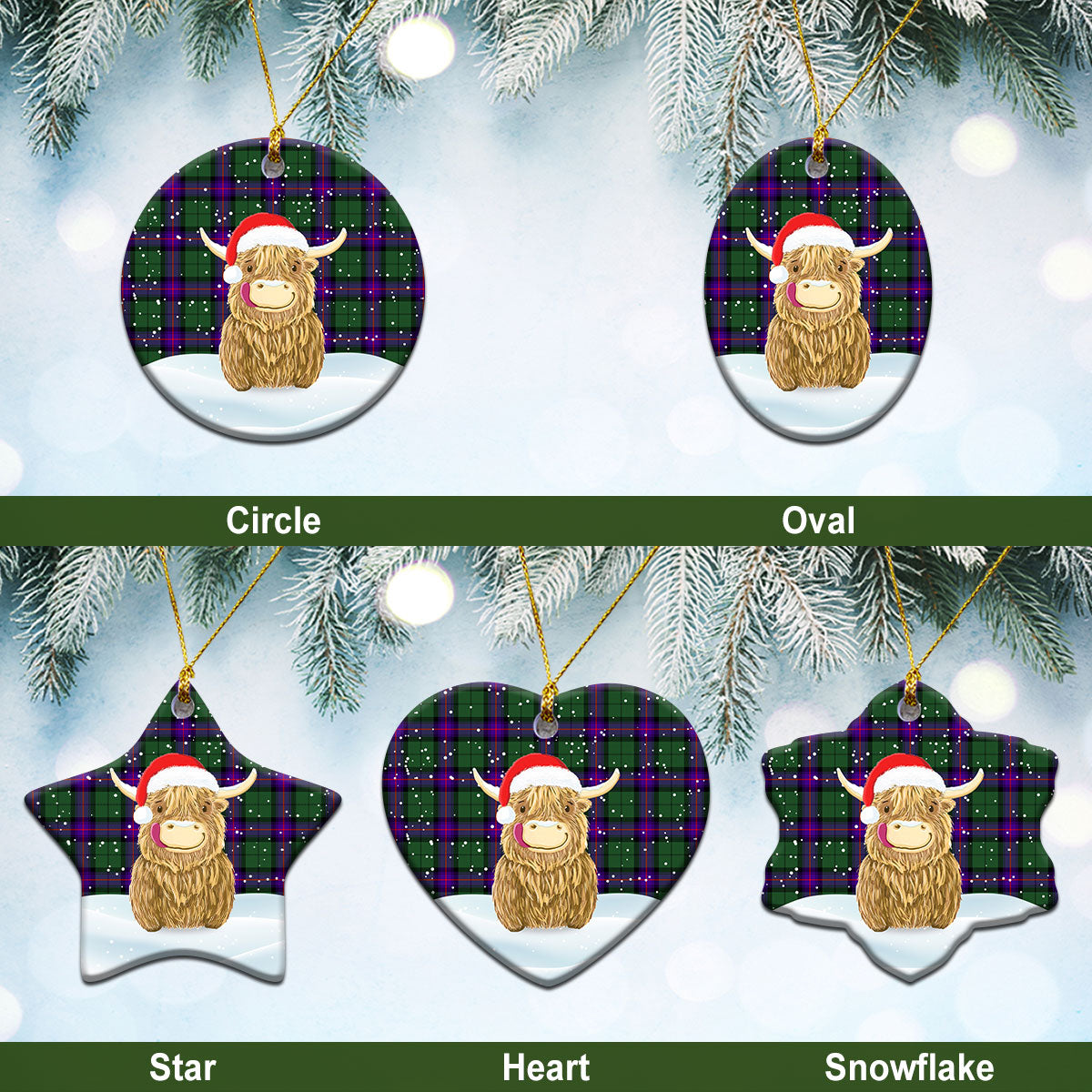 Armstrong Modern Tartan Christmas Ceramic Ornament - Highland Cows Style