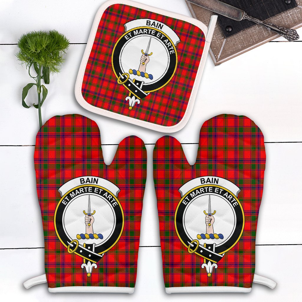 Bain Tartan Crest Oven Mitt And Pot Holder (2 Oven Mitts + 1 Pot Holder)