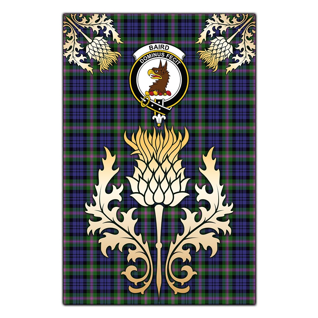 Baird Modern Tartan Crest Black Garden Flag - Gold Thistle Style Ver 1
