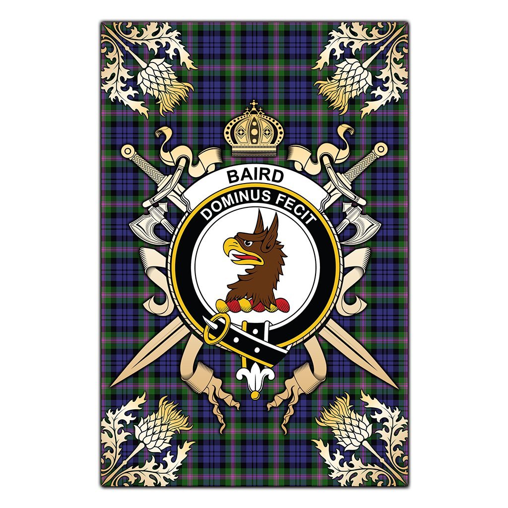 Baird Modern Tartan Crest Black Garden Flag - Gold Thistle Style
