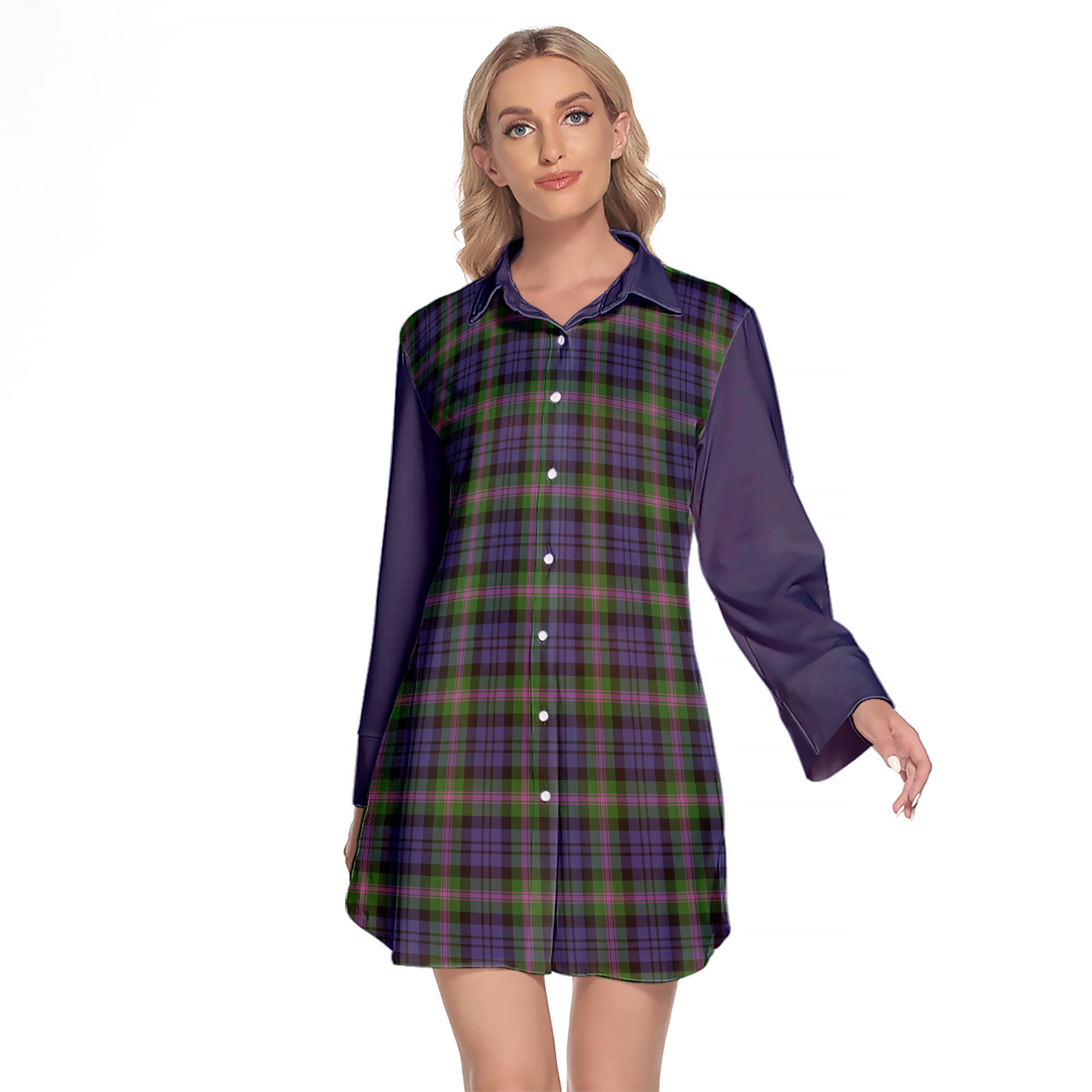 Baird Modern Tartan Women's Lapel Shirt Dress With Long Sleeve