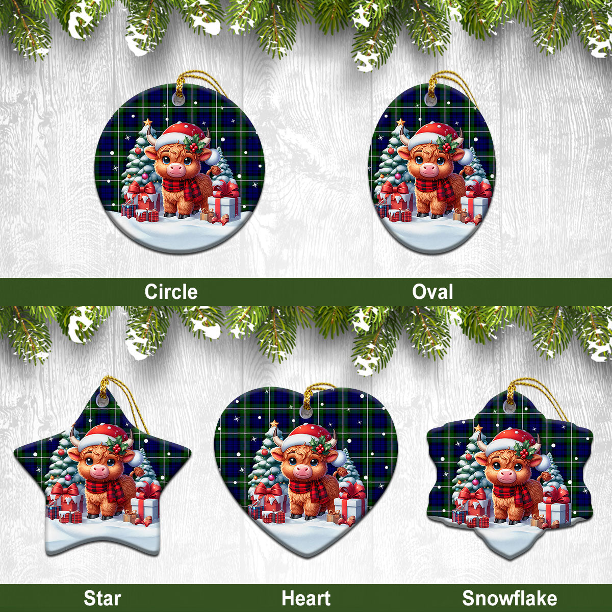 Bannerman Tartan Christmas Ceramic Ornament - Highland Cow Winter Style