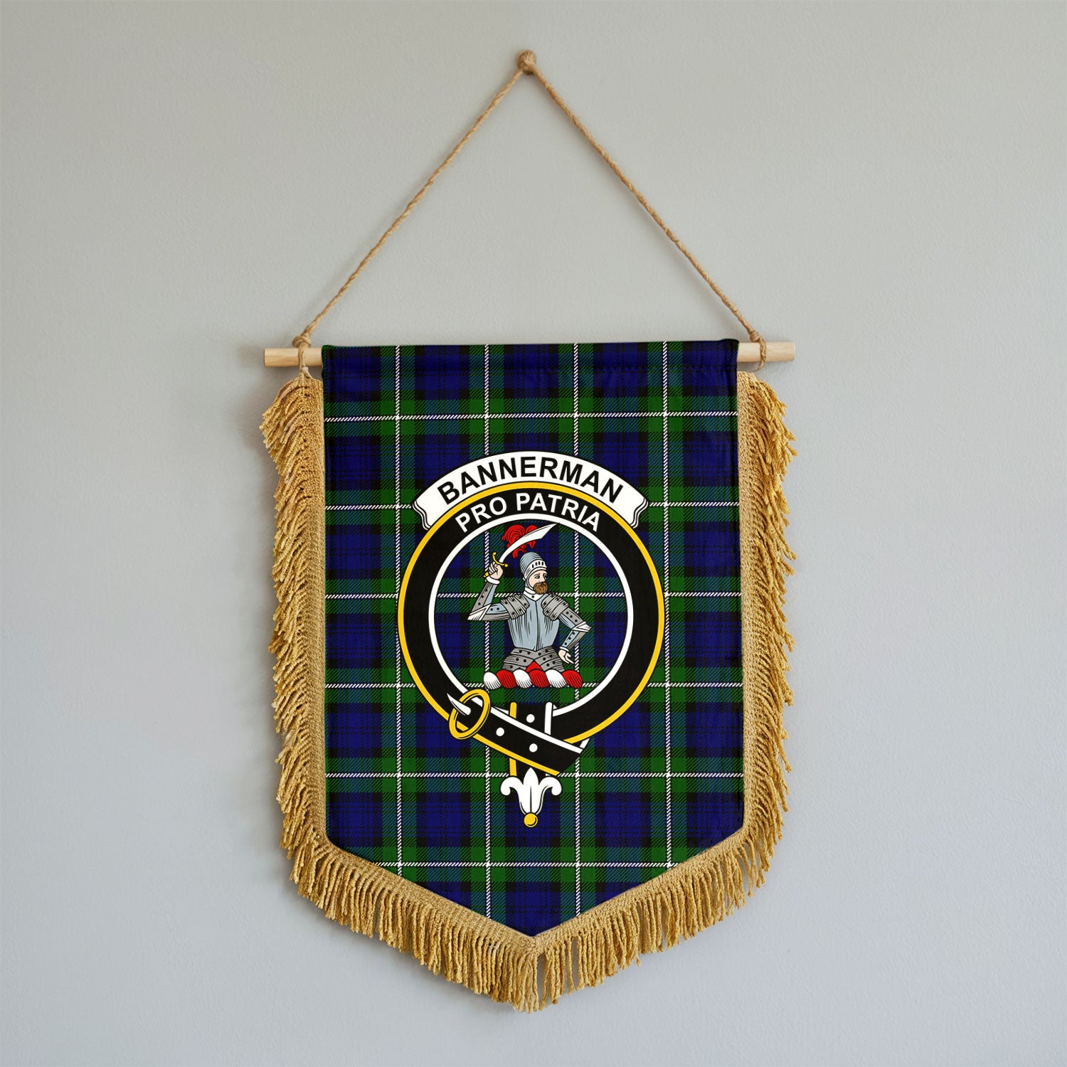 Bannerman Tartan Crest Wall Hanging Banner - Wood Pole