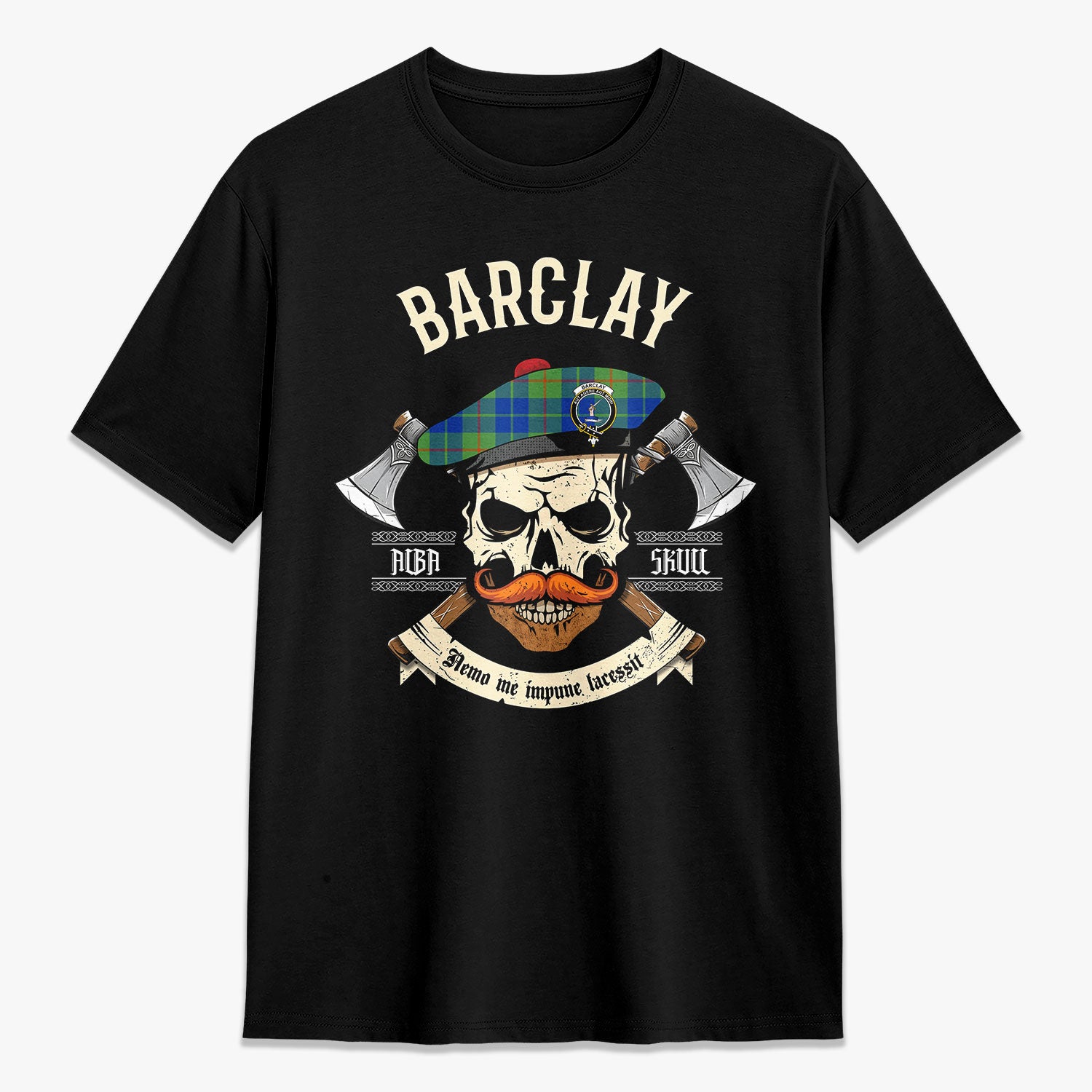 Barclay Hunting Ancient Tartan Crest 2D T-shirt - Alba Skull Style,