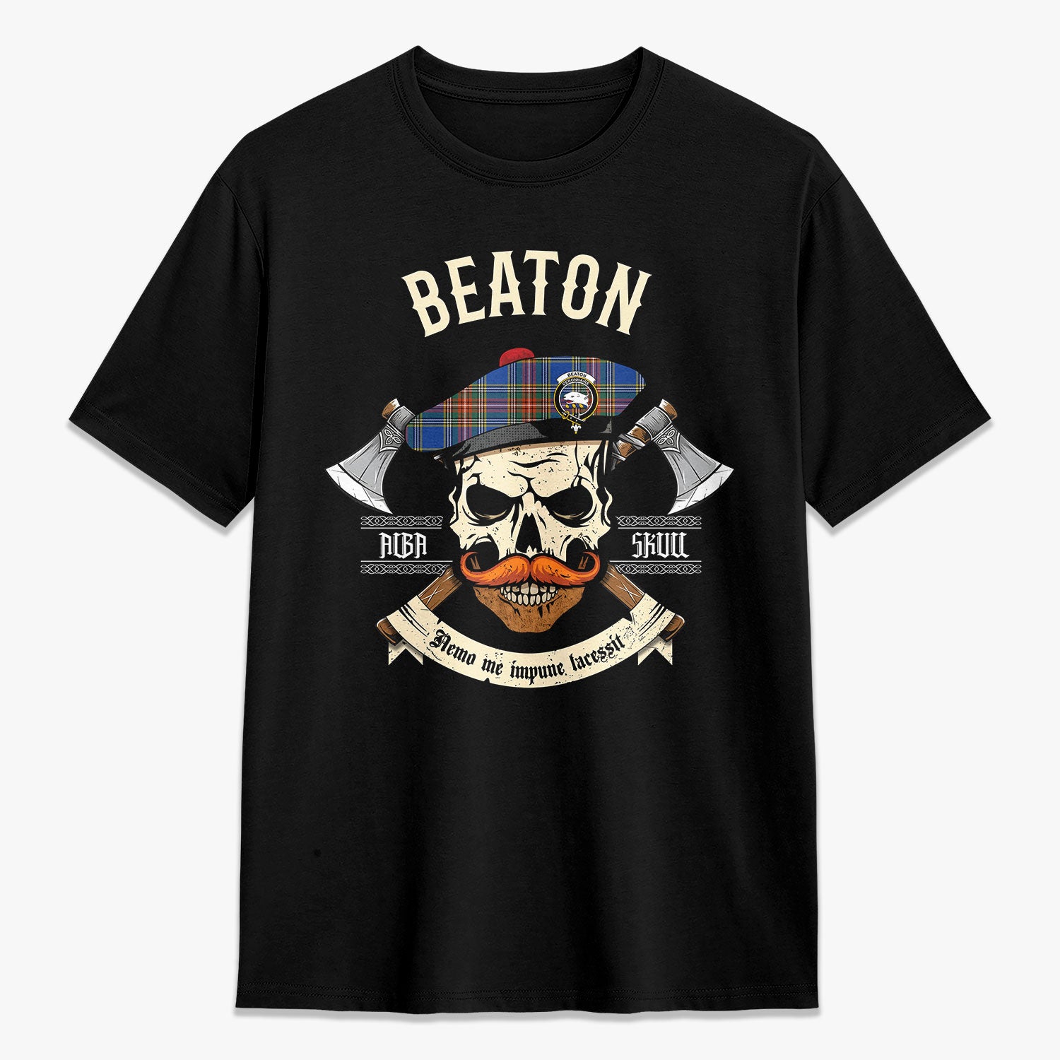 Beaton Ancient Tartan Crest 2D T-shirt - Alba Skull Style,