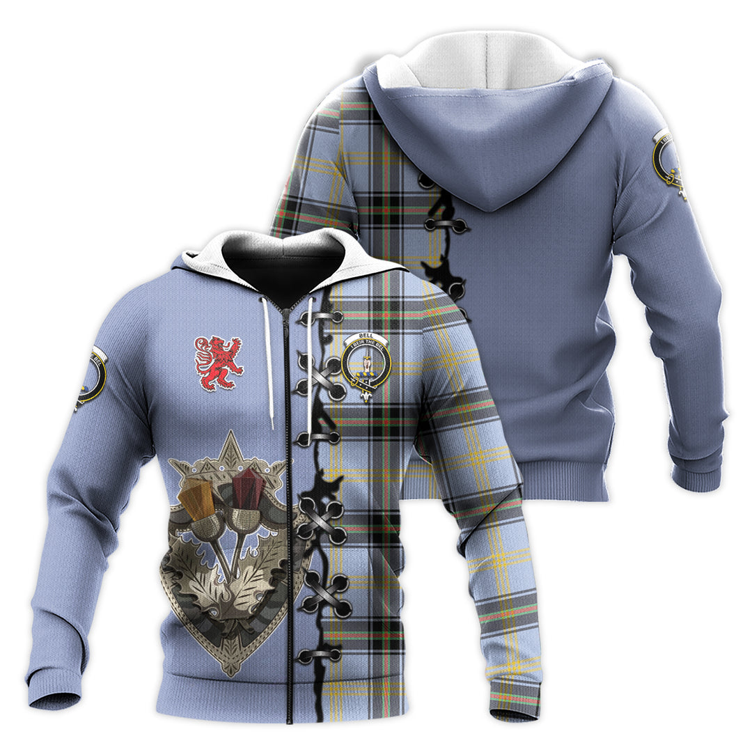Bell Tartan Hoodie - Lion Rampant And Celtic Thistle Style