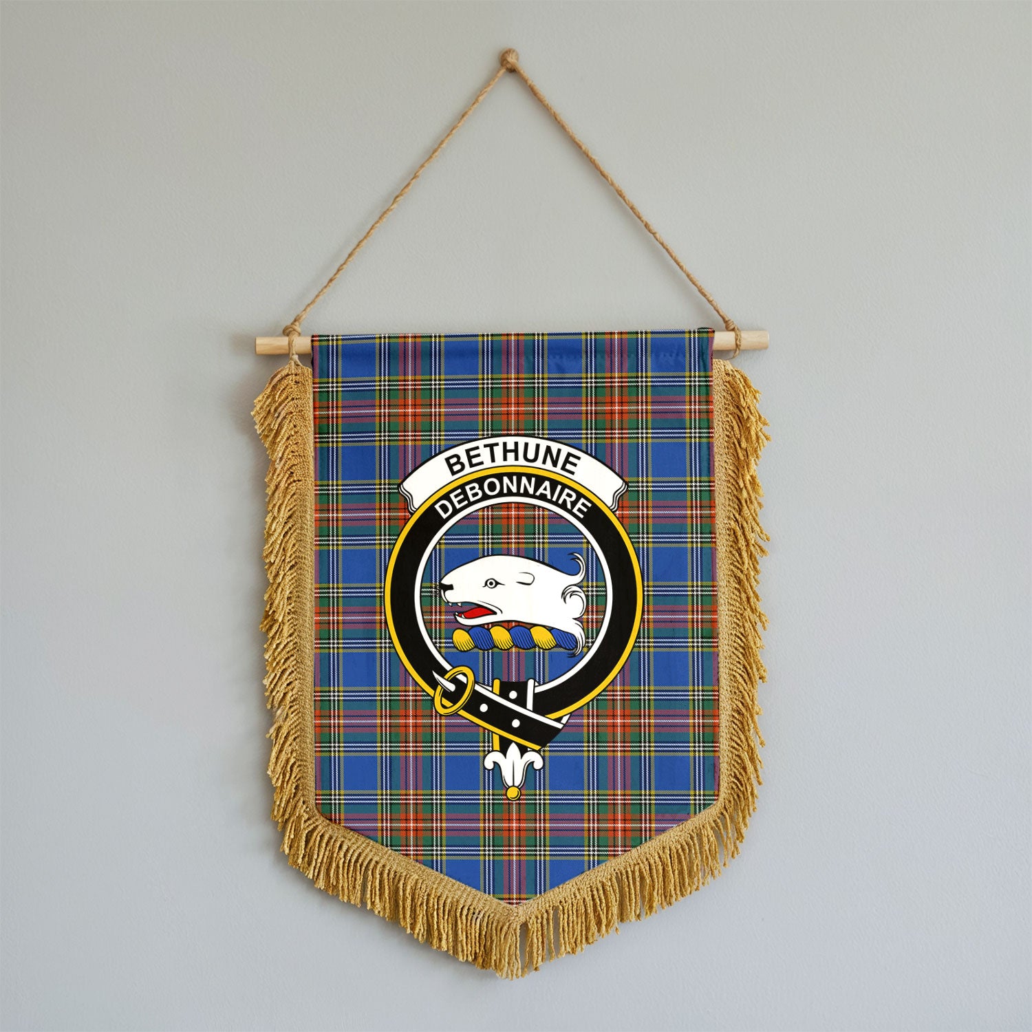 Bethune Ancient Tartan Crest Wall Hanging Banner - Wood Pole