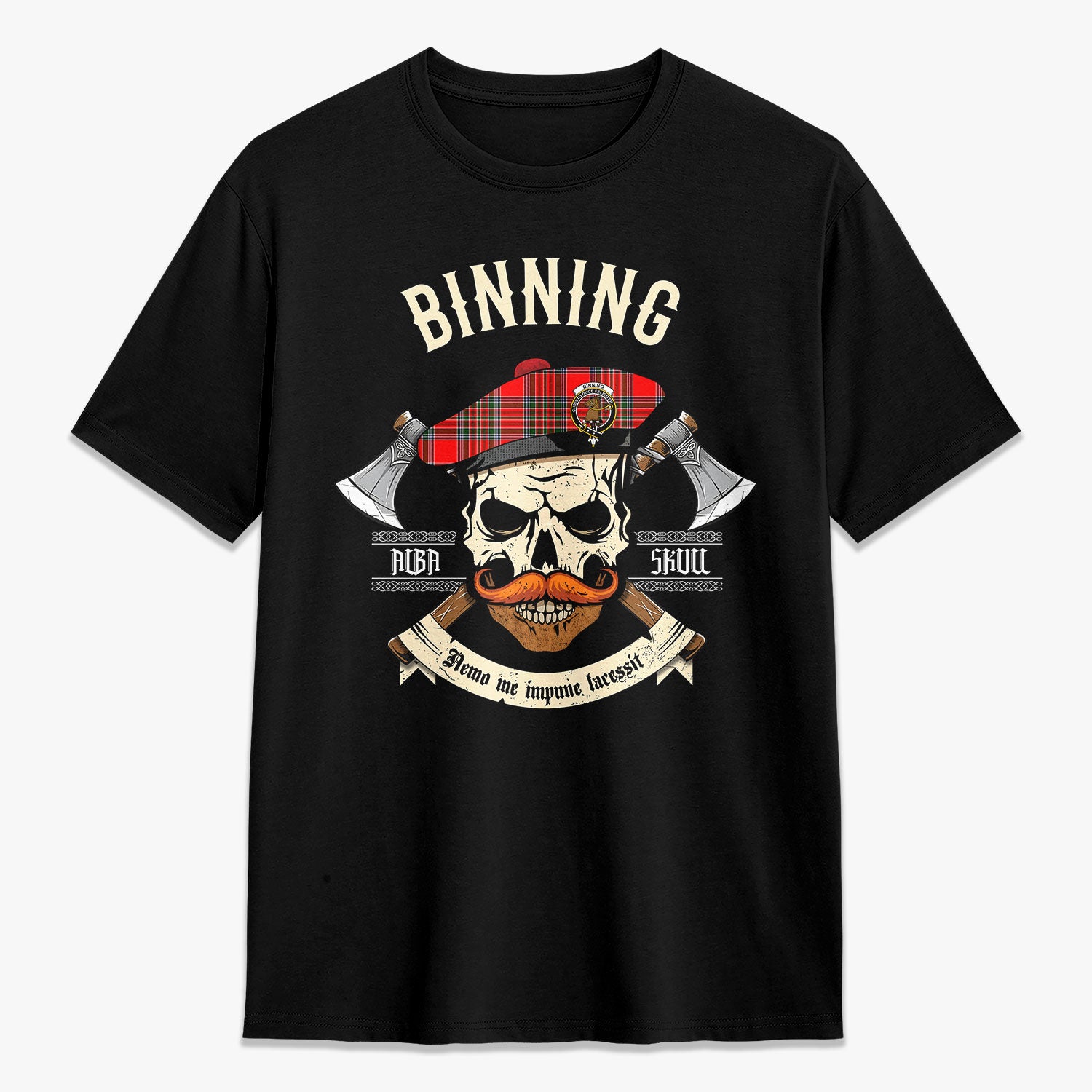 Binning (of Wallifoord) Tartan Crest 2D T-shirt - Alba Skull Style,
