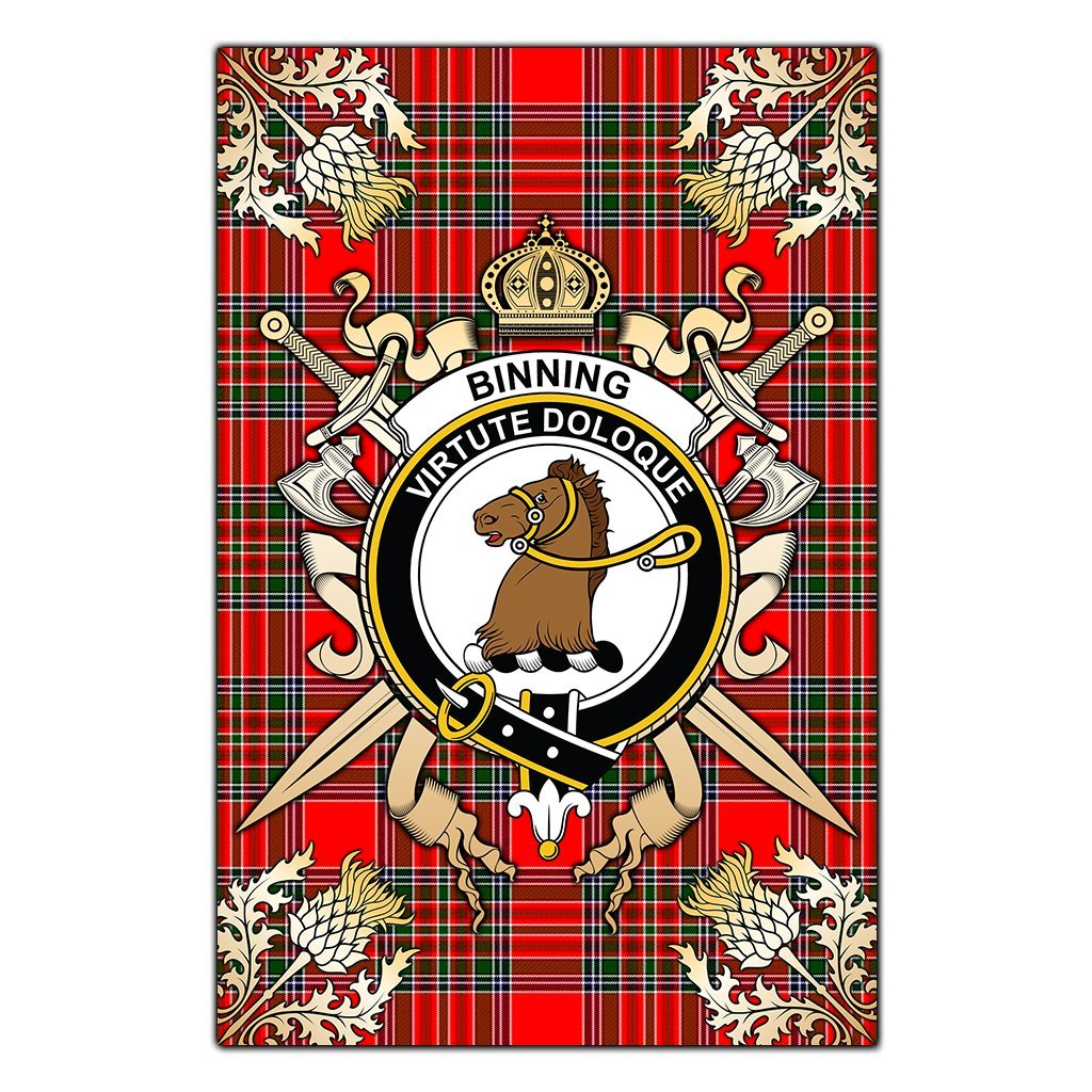 Binning Tartan Crest Black Garden Flag - Gold Thistle Style
