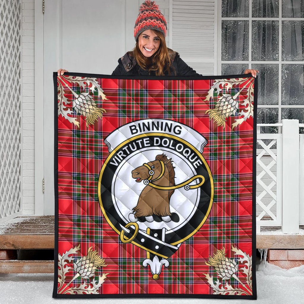 Binning Tartan Crest Premium Quilt - Gold Thistle Style