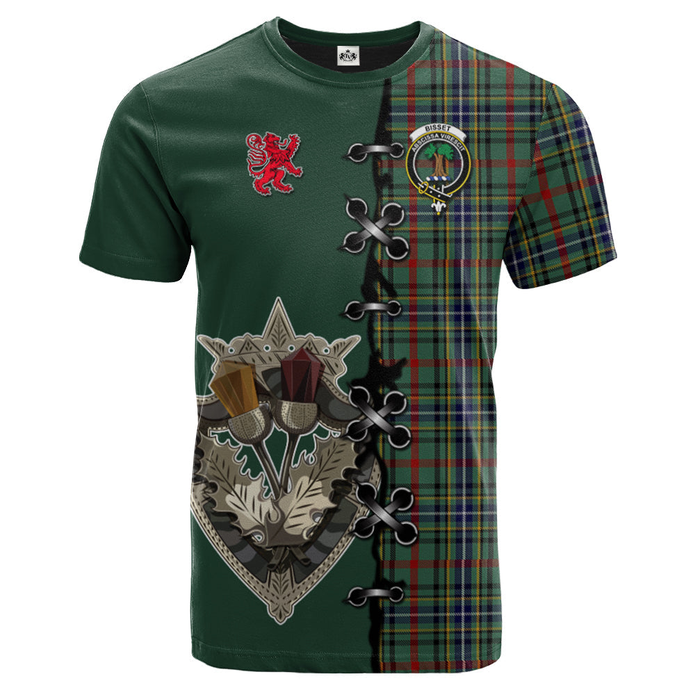 Bisset Tartan T-shirt - Lion Rampant And Celtic Thistle Style