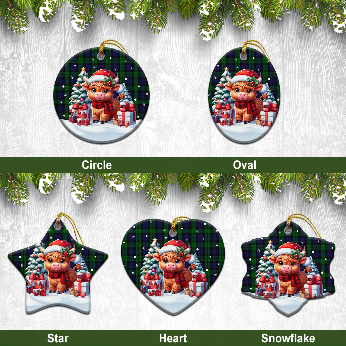 Black Watch Tartan Christmas Ceramic Ornament - Highland Cow Winter Style