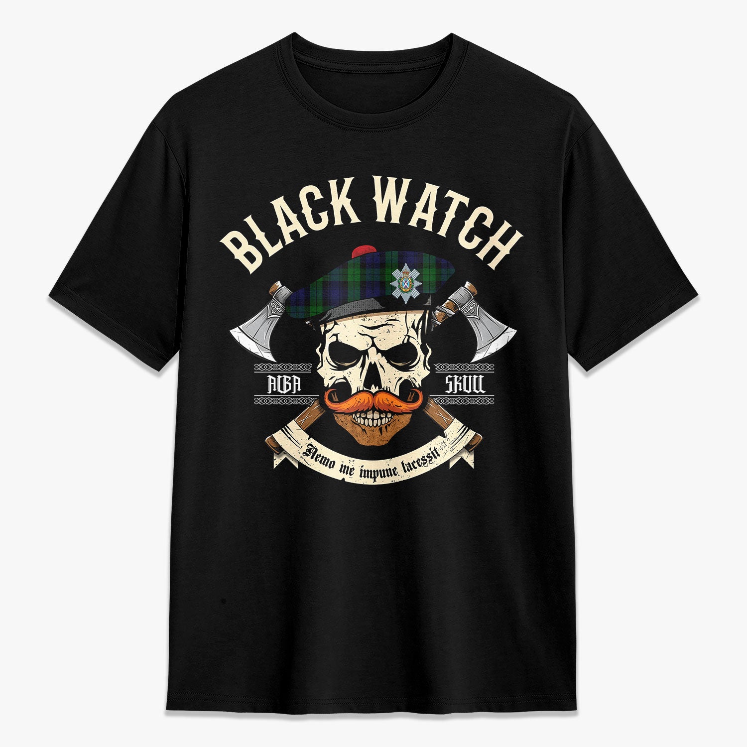 Black Watch Tartan Crest 2D T-shirt - Alba Skull Style,