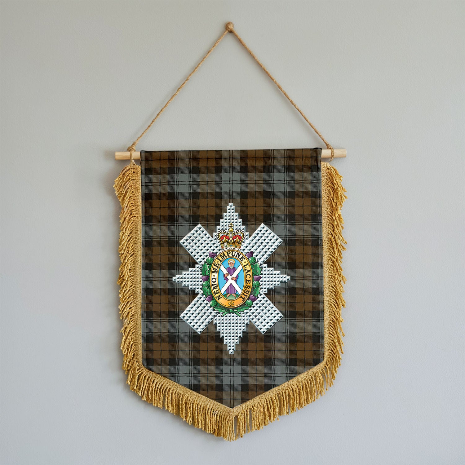 Black Watch Weathered Tartan Crest Wall Hanging Banner - Wood Pole