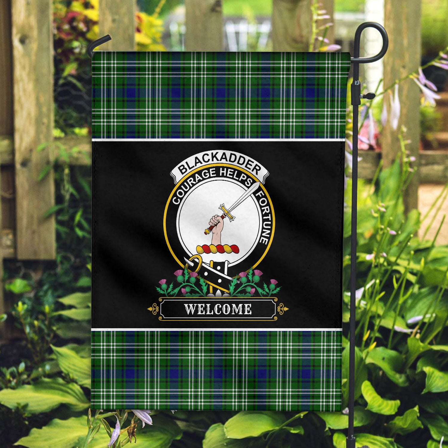 Blackadder Tartan Crest Garden Flag - Welcome Style