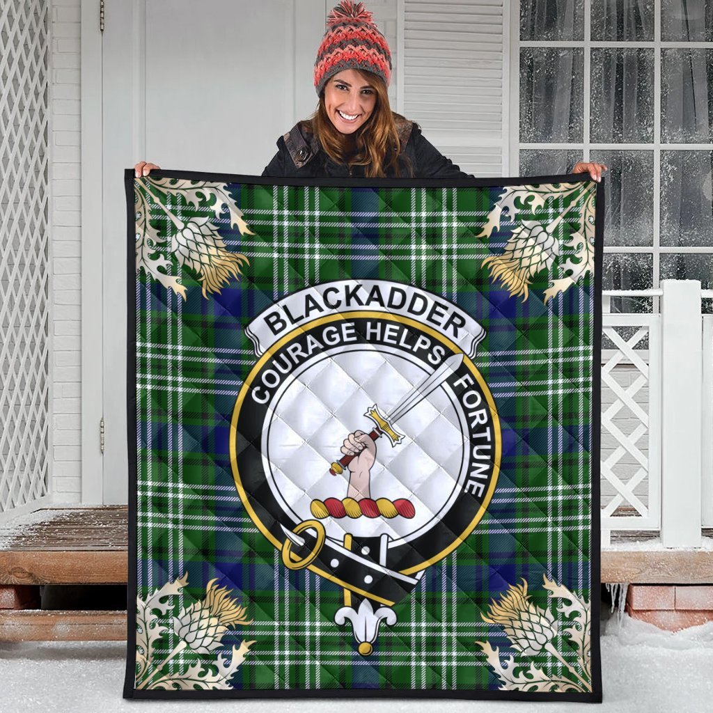Blackadder Tartan Crest Premium Quilt - Gold Thistle Style