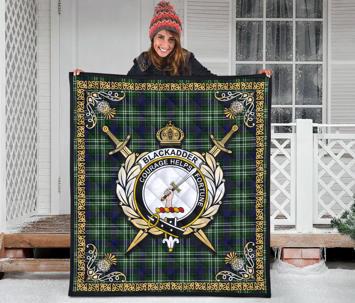 Blackadder Tartan Crest Premium Quilt - Celtic Thistle Style
