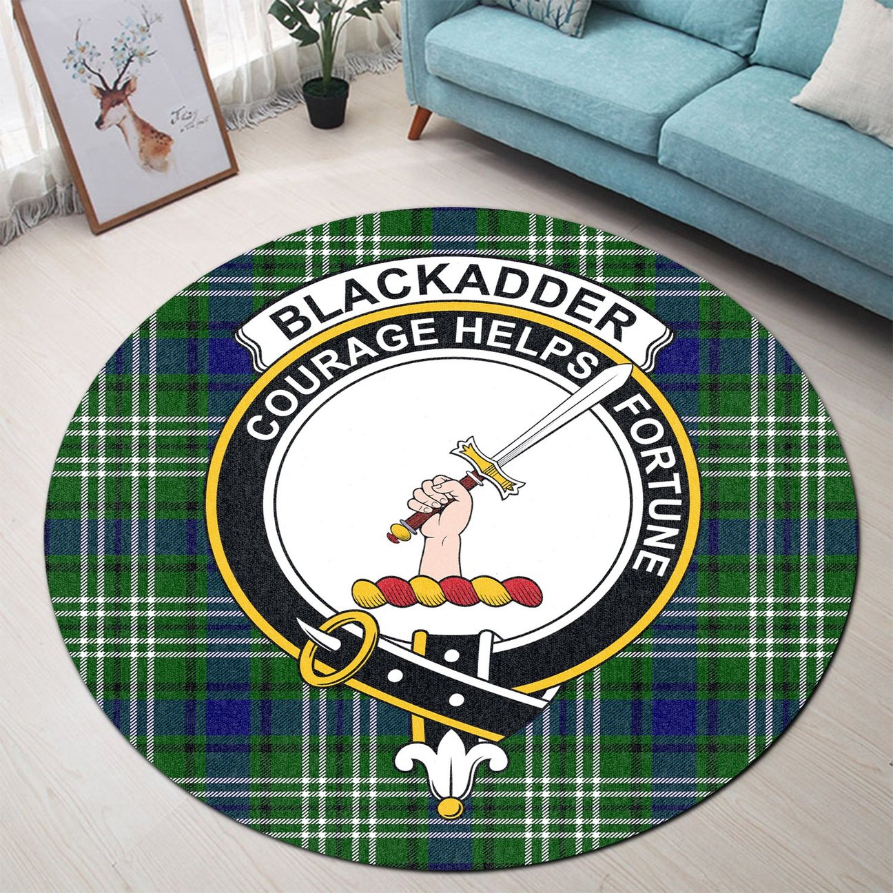 Blackadder Tartan Crest Round Rug