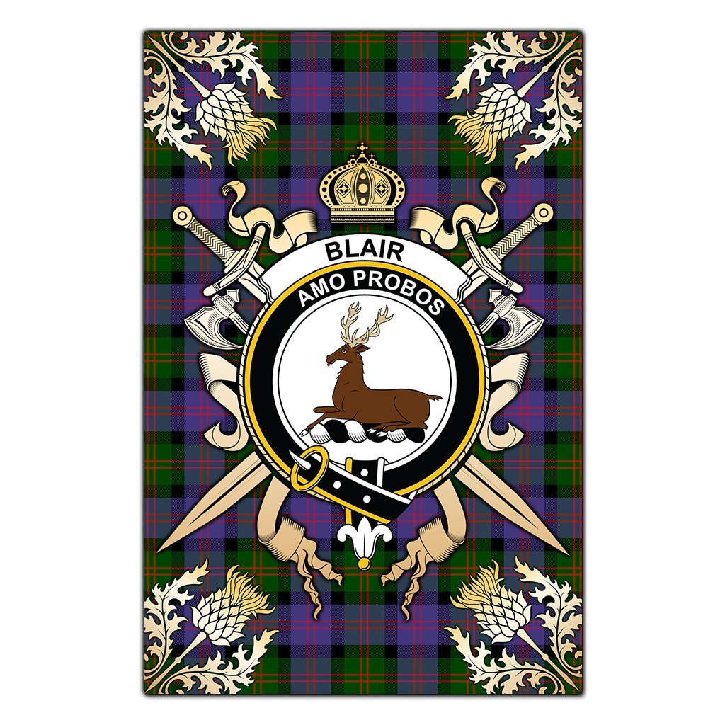 Blair Modern Tartan Crest Black Garden Flag - Gold Thistle Style