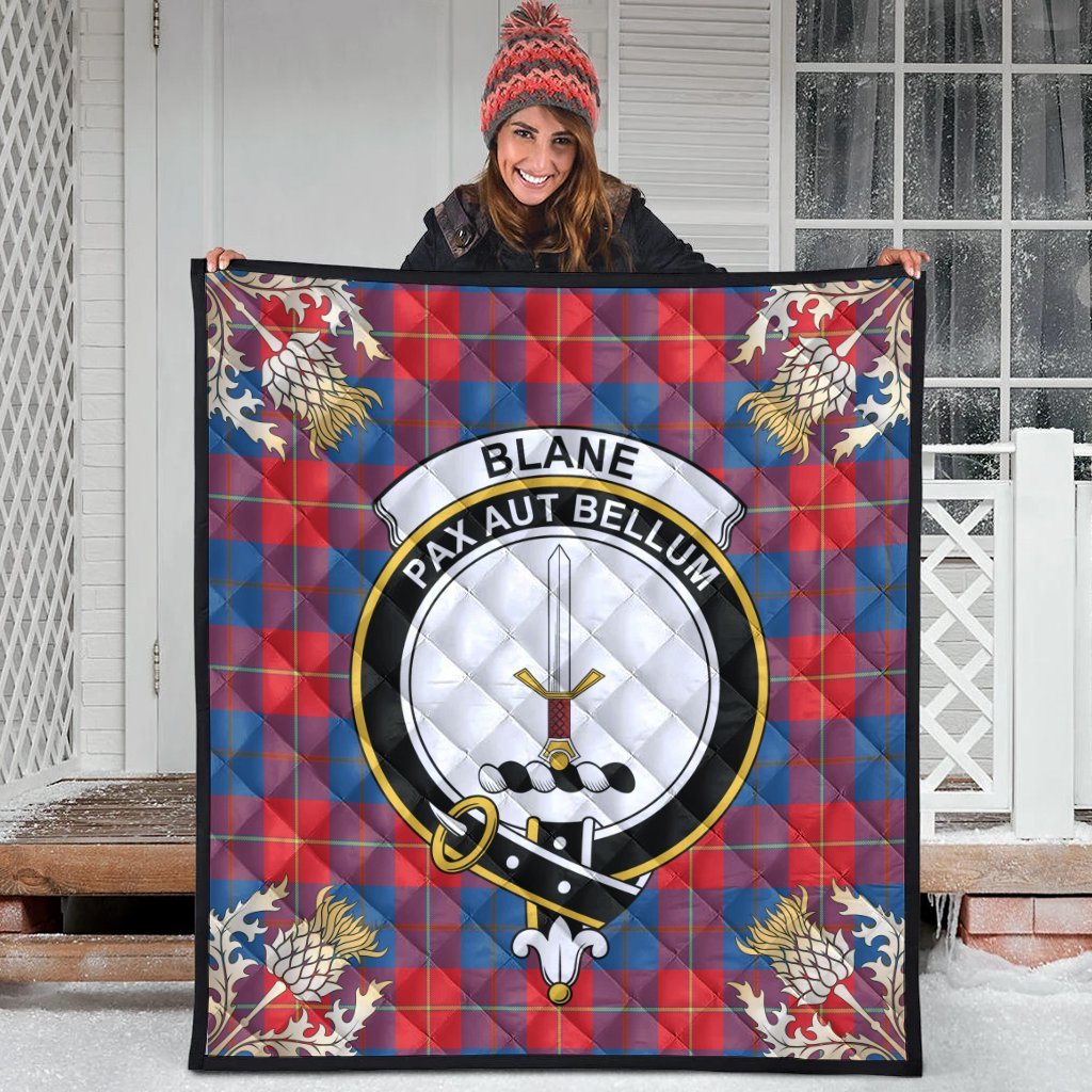 Blane Tartan Crest Premium Quilt - Gold Thistle Style