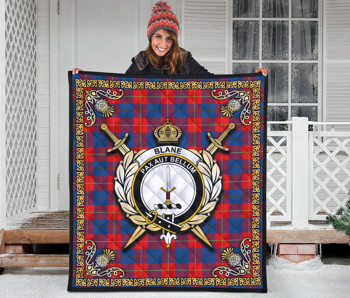 Blane Tartan Crest Premium Quilt - Celtic Thistle Style