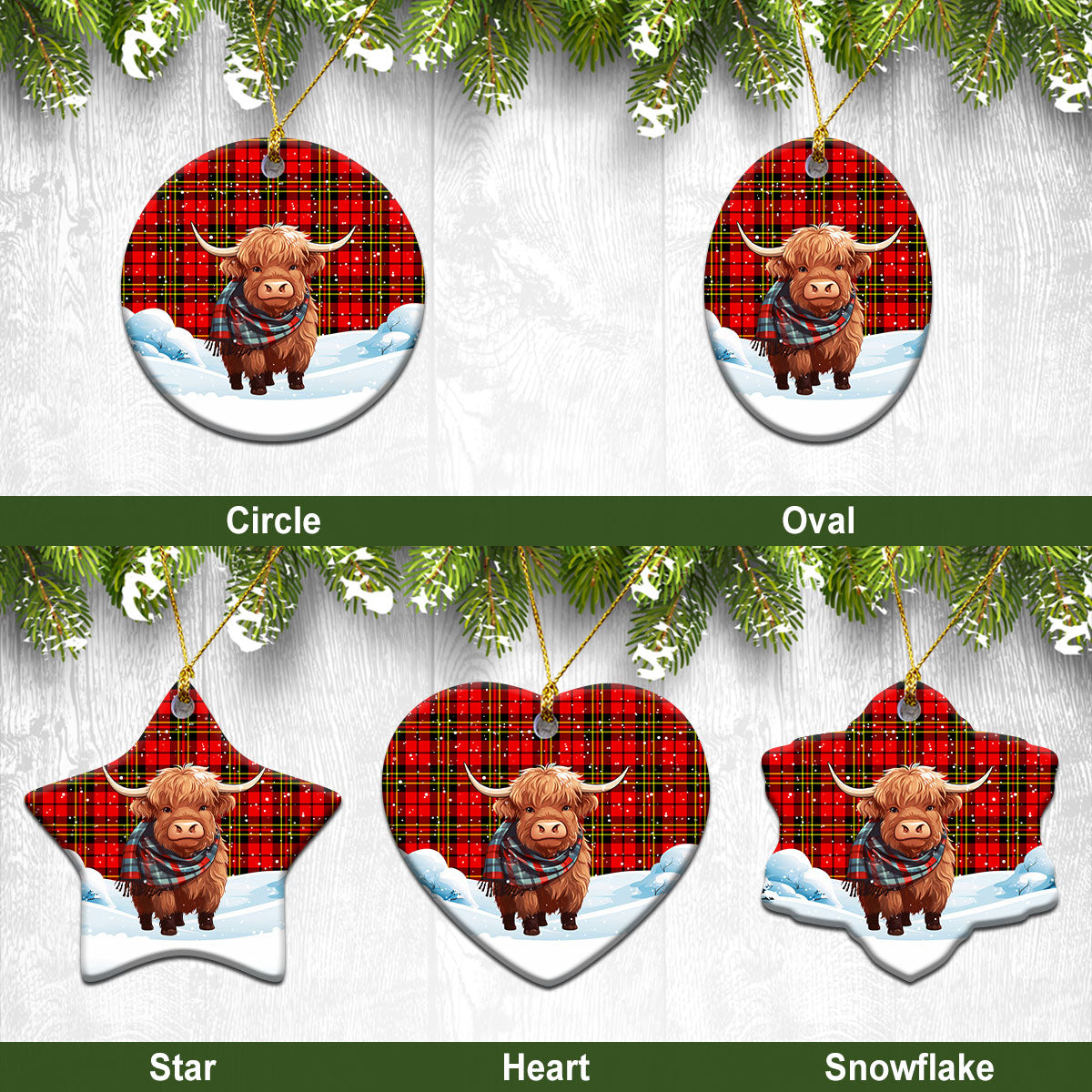 Brodie Modern Tartan Christmas Ceramic Ornament - Highland Cows Snow Style