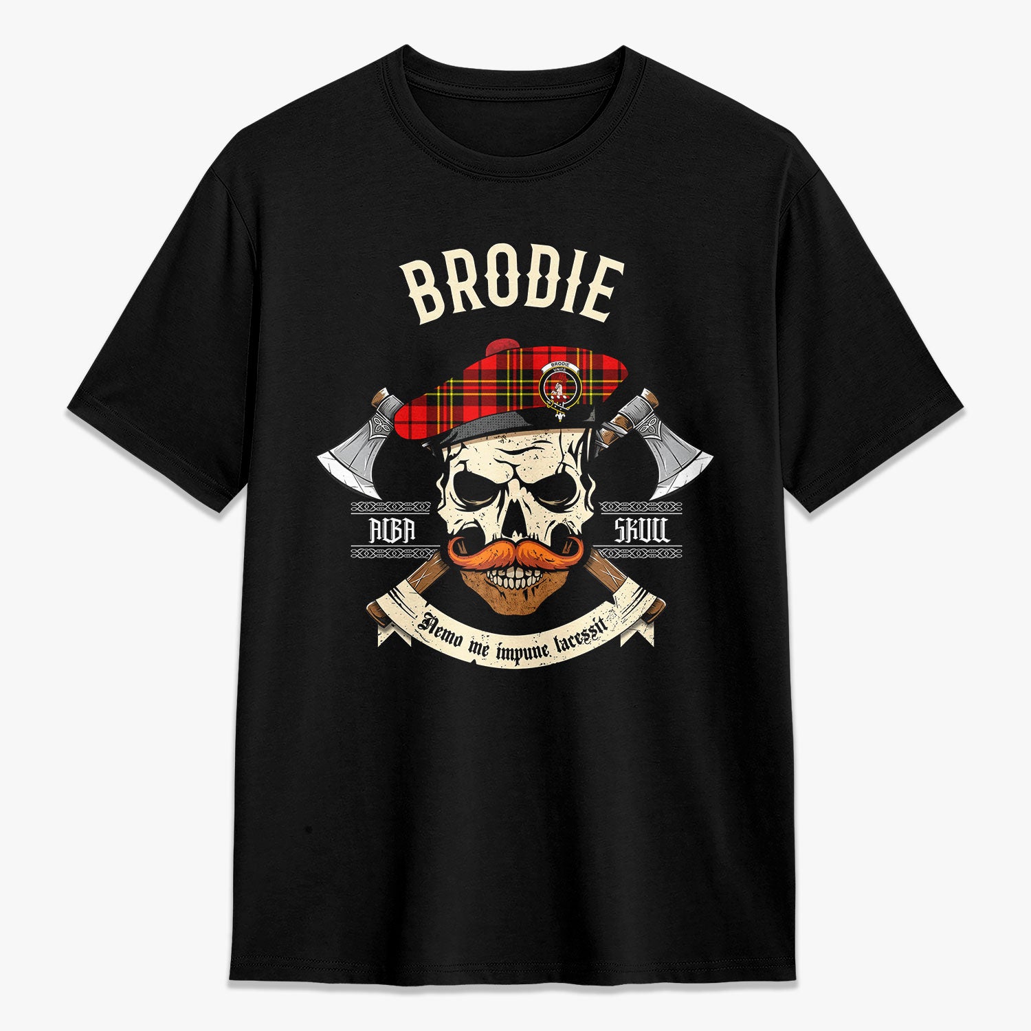 Brodie Modern Tartan Crest 2D T-shirt - Alba Skull Style,