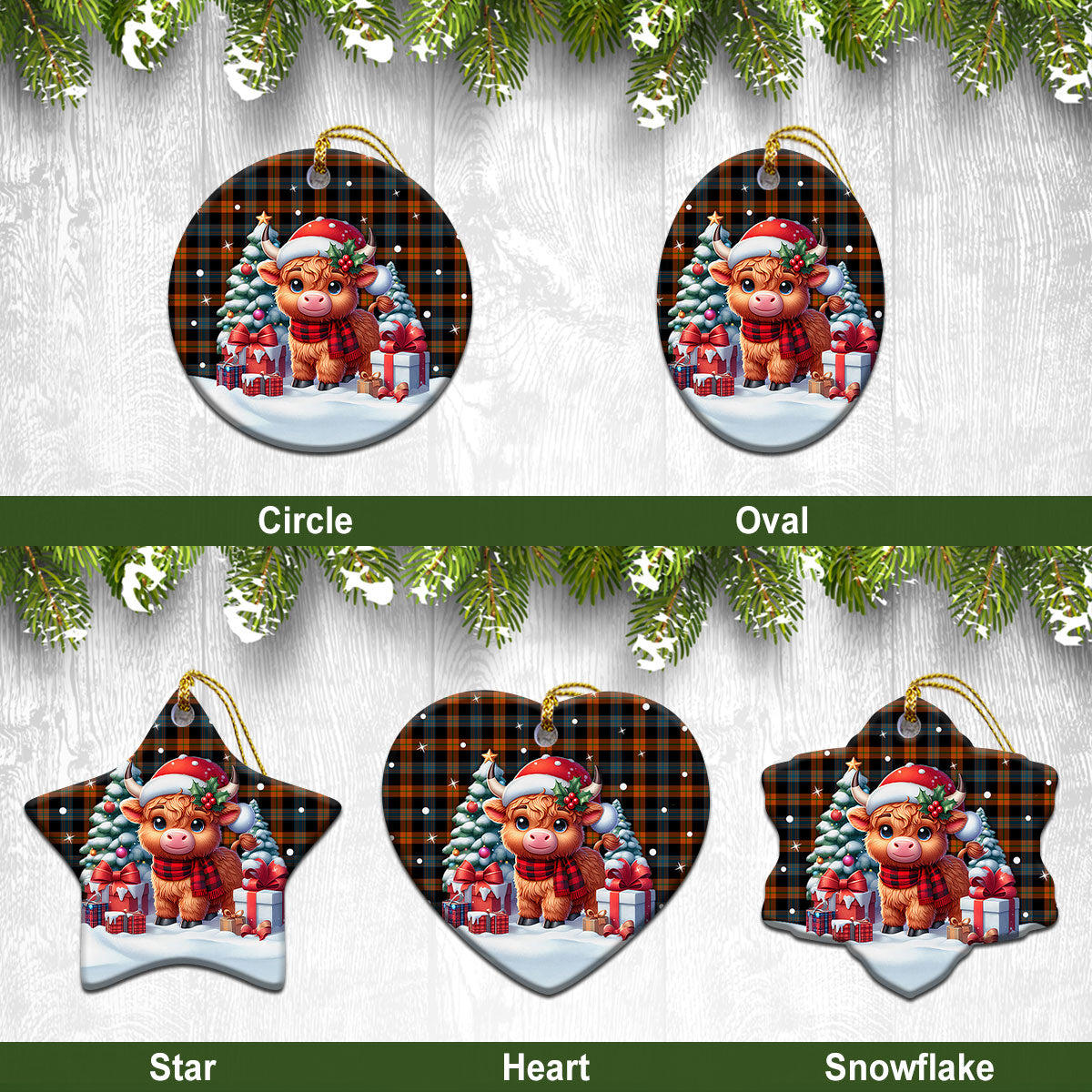 Broun Ancient Tartan Christmas Ceramic Ornament - Highland Cow Winter Style