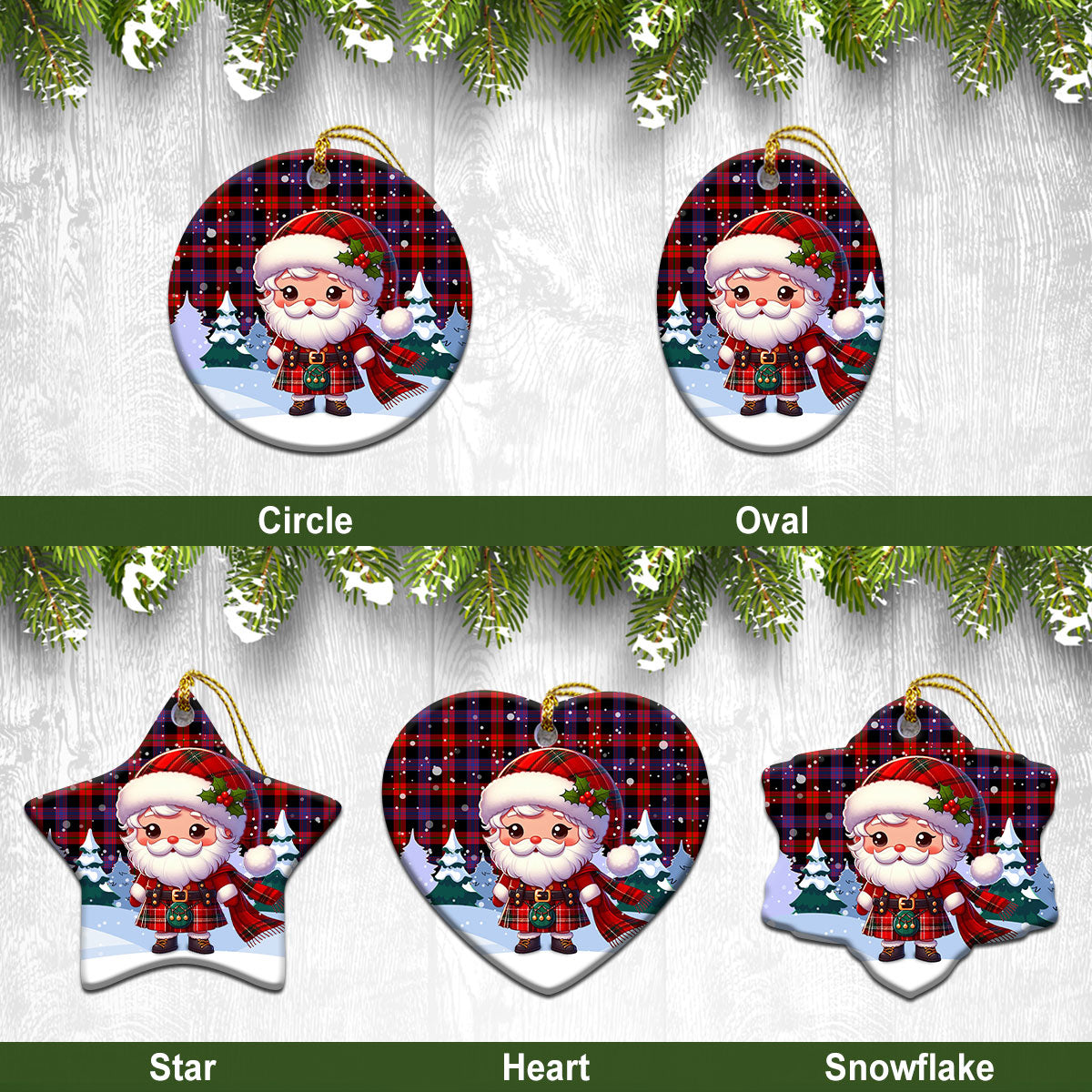 Broun Modern Tartan Christmas Ceramic Ornament - Santa Claus In Kilt Style