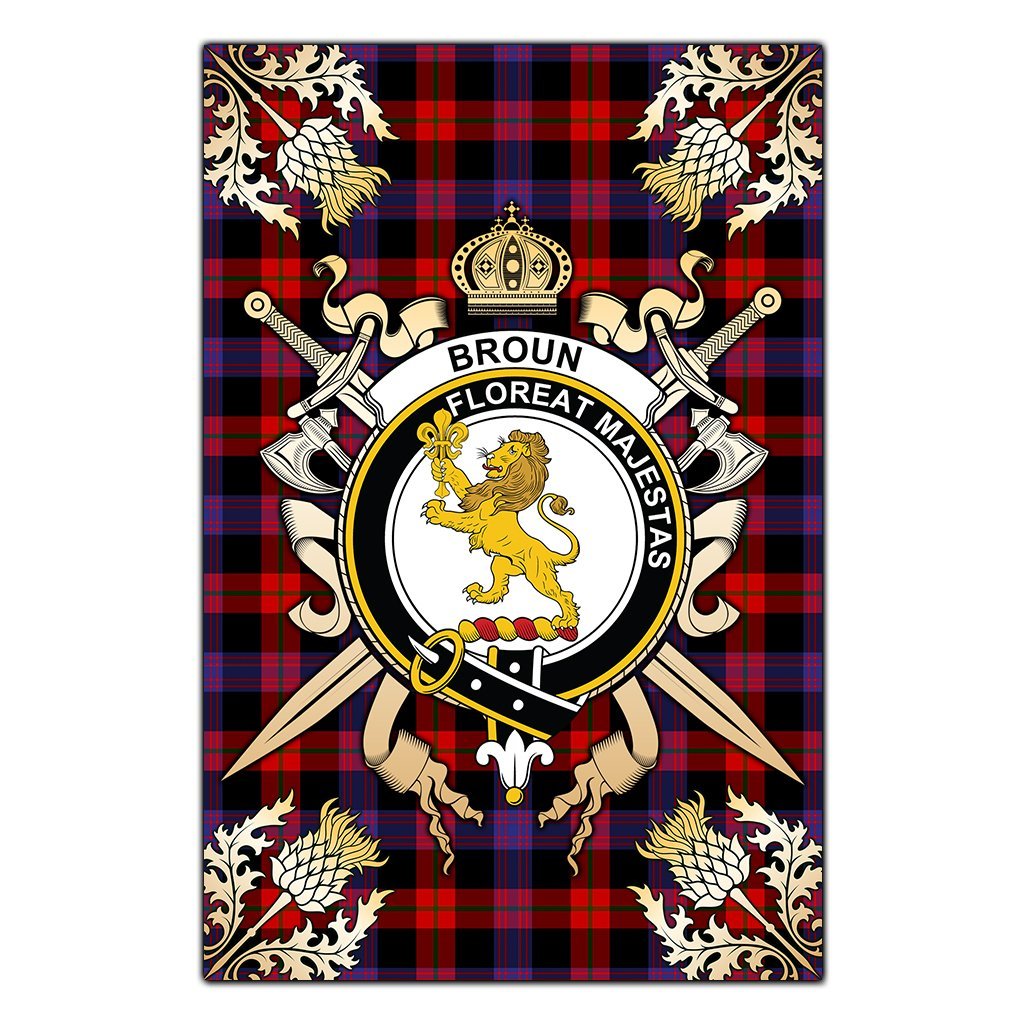 Broun Modern Tartan Crest Black Garden Flag - Gold Thistle Style