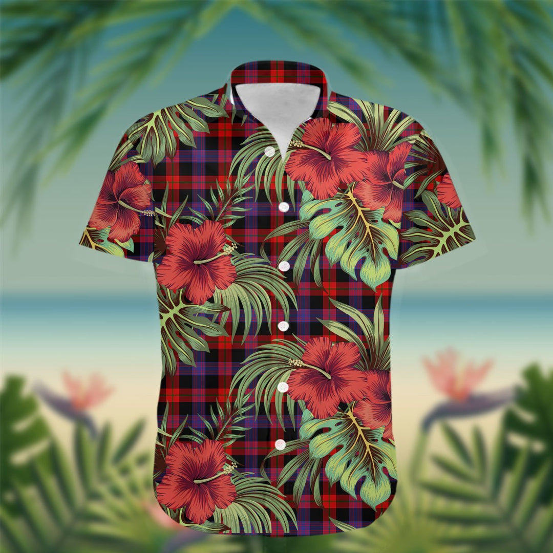 Broun Tartan Hawaiian Shirt Hibiscus, Coconut, Parrot, Pineapple - Tropical Garden Shirt