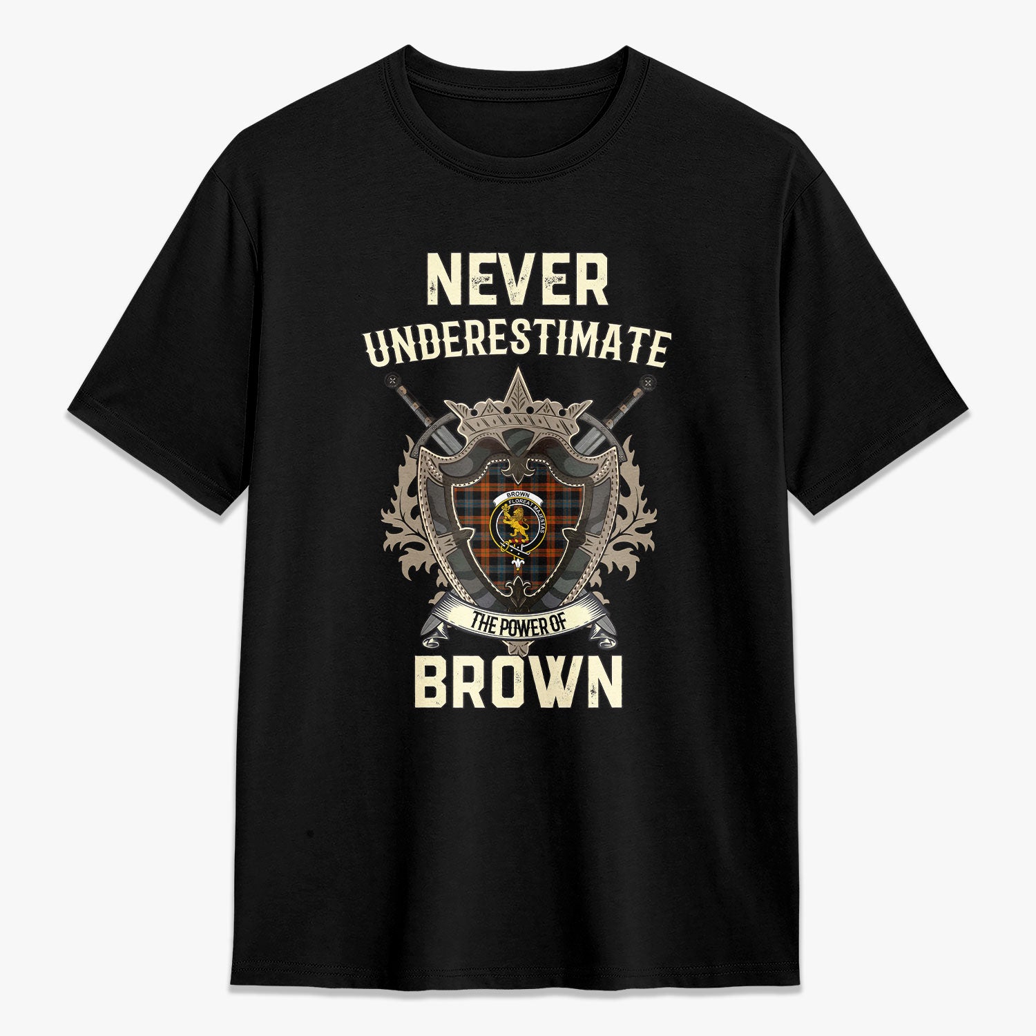 Brown Ancient Tartan Crest 2D T-shirt - Never Underestimate Style