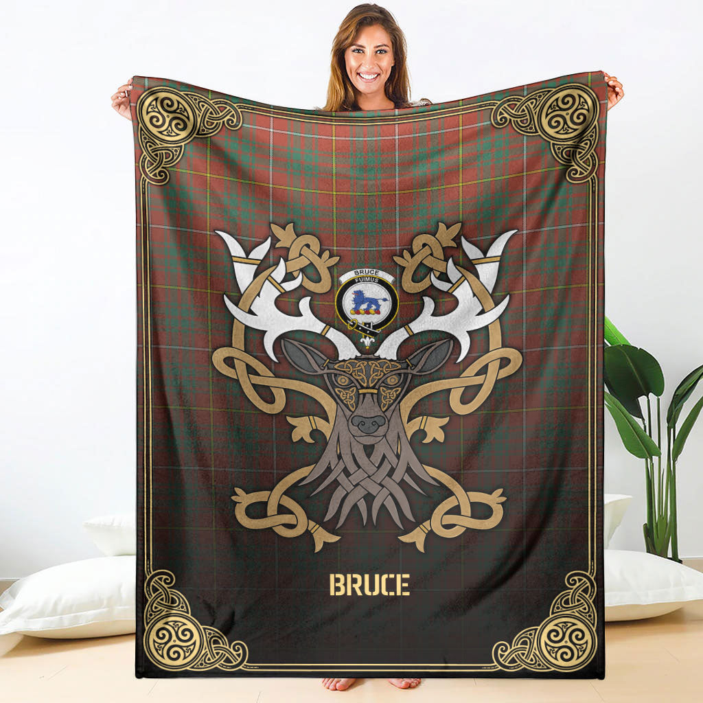 Bruce Ancient Tartan Crest Premium Blanket - Celtic Stag style