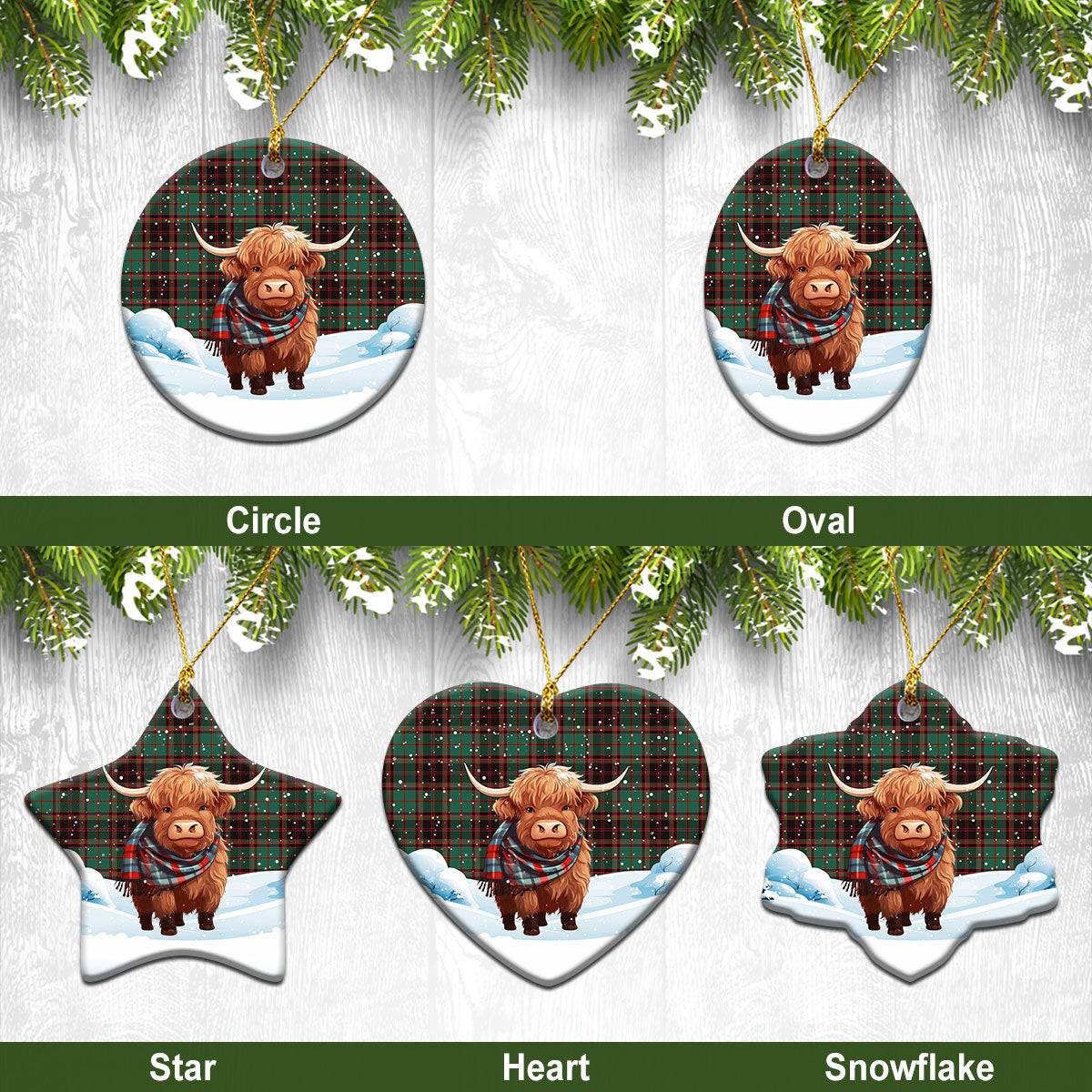 Buchan Ancient Tartan Christmas Ceramic Ornament - Highland Cows Snow Style