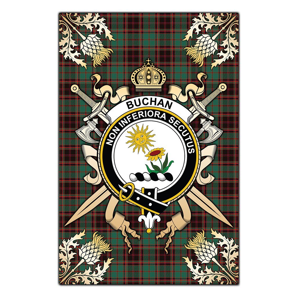 Buchan Ancient Tartan Crest Black Garden Flag - Gold Thistle Style