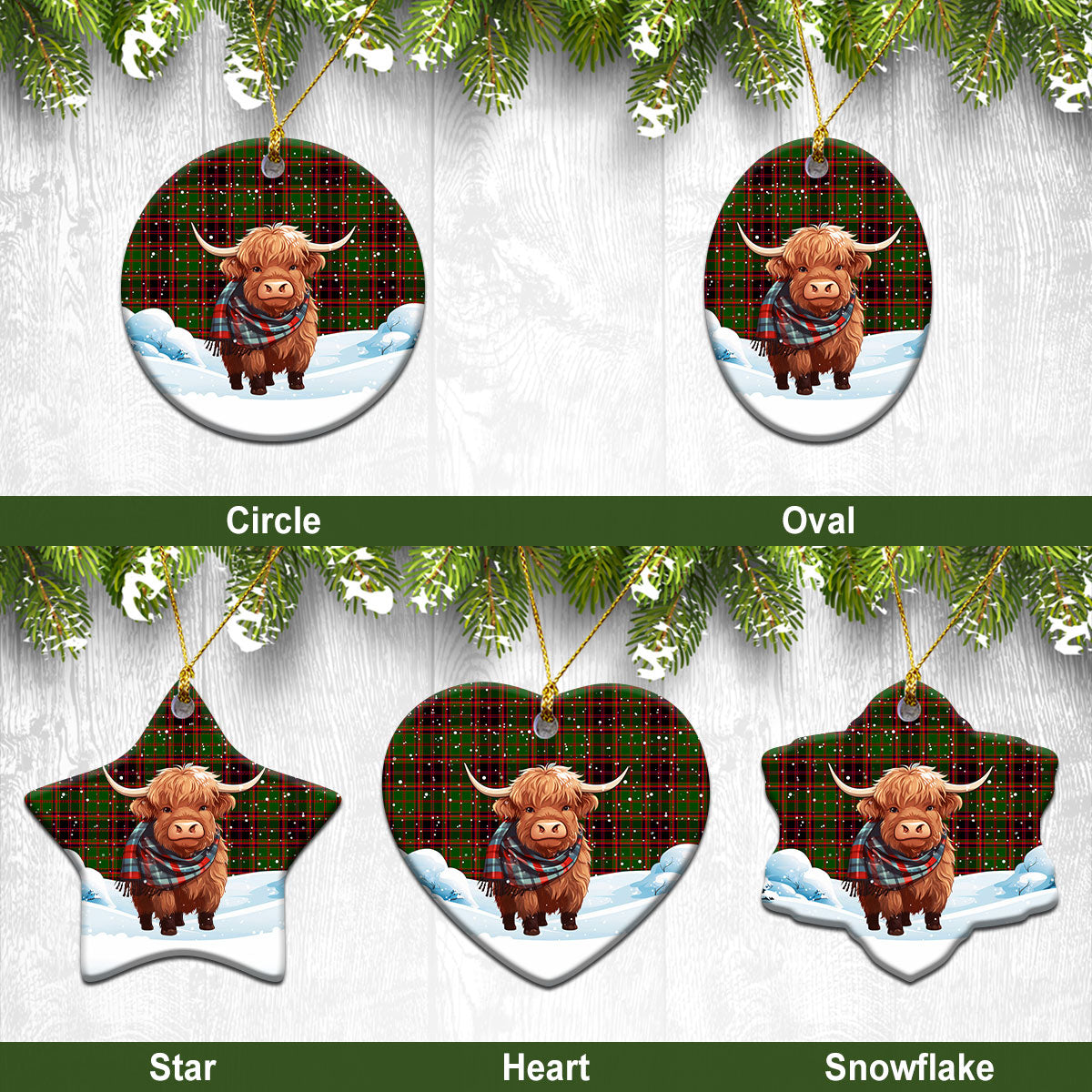 Buchan Modern Tartan Christmas Ceramic Ornament - Highland Cows Snow Style