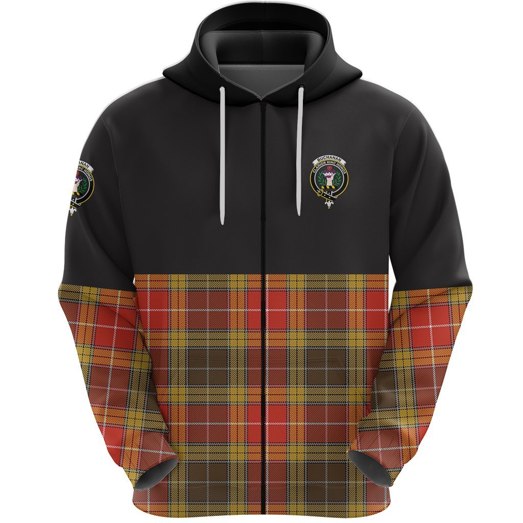 Buchanan Old Set Weathered Clan Half Of Tartan Zipper Hoodie