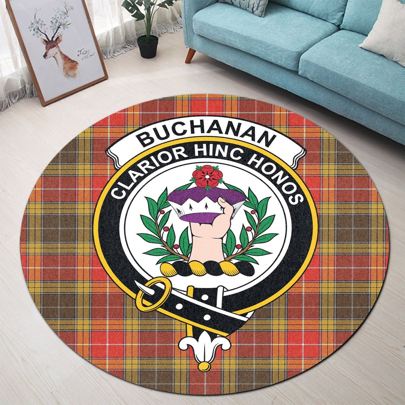 Buchanan Old Set Weathered Tartan Crest Round Rug