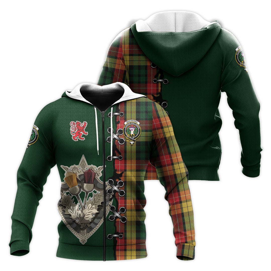 Buchanan Tartan Hoodie - Lion Rampant And Celtic Thistle Style