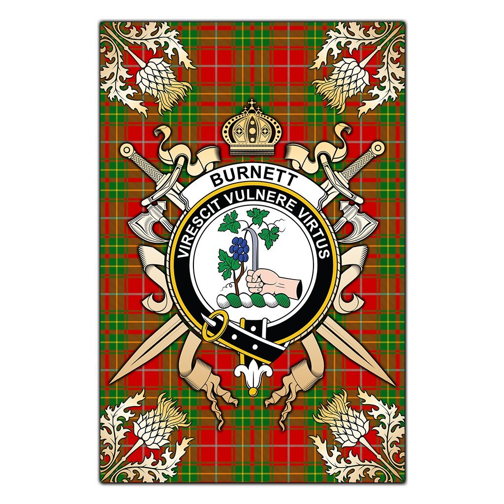 Burnett Ancient Tartan Crest Black Garden Flag - Gold Thistle Style