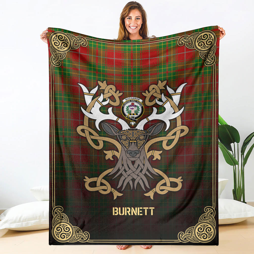 Burnett Ancient Tartan Crest Premium Blanket - Celtic Stag style