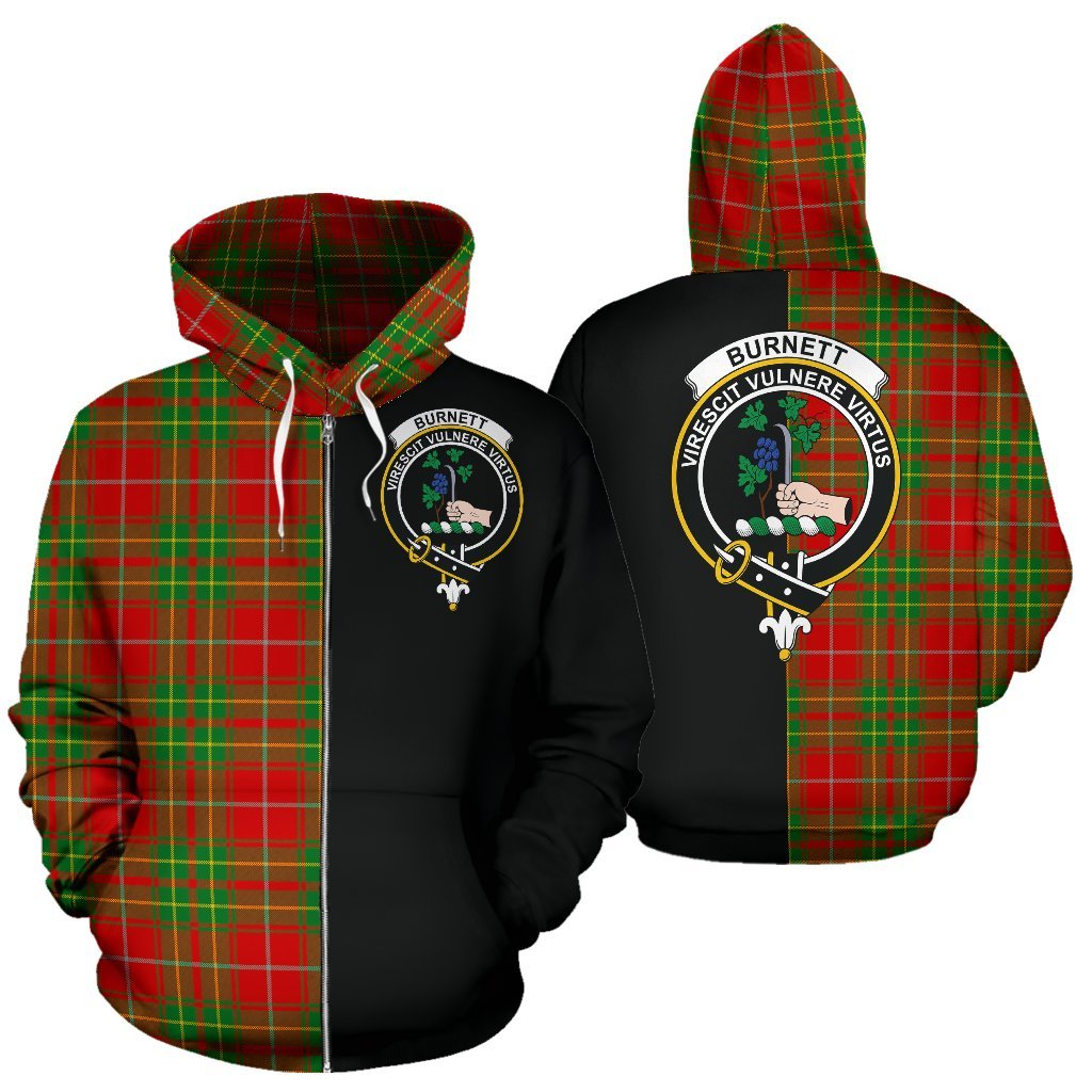 Burnett Ancient Tartan Crest Zipper Hoodie - Half Of Me Style