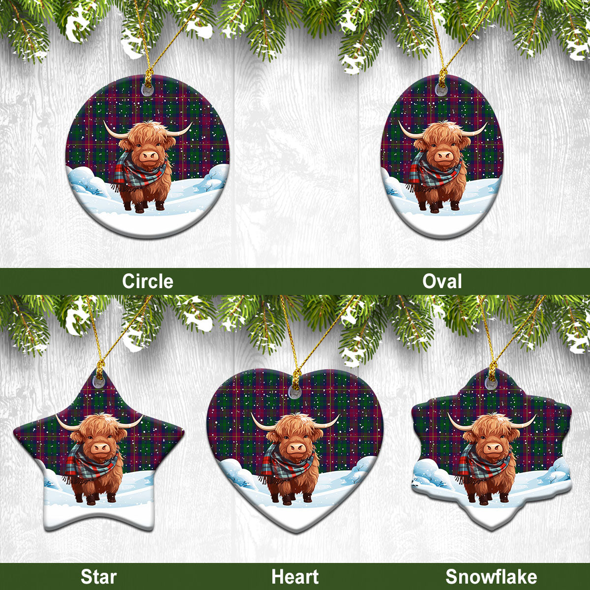 Cairns Tartan Christmas Ceramic Ornament - Highland Cows Snow Style