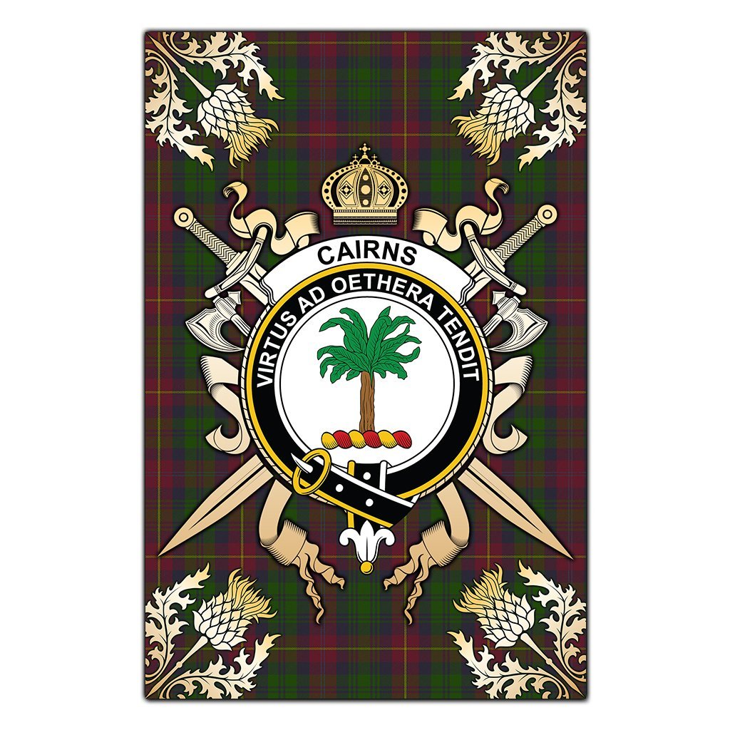 Cairns Tartan Crest Black Garden Flag - Gold Thistle Style